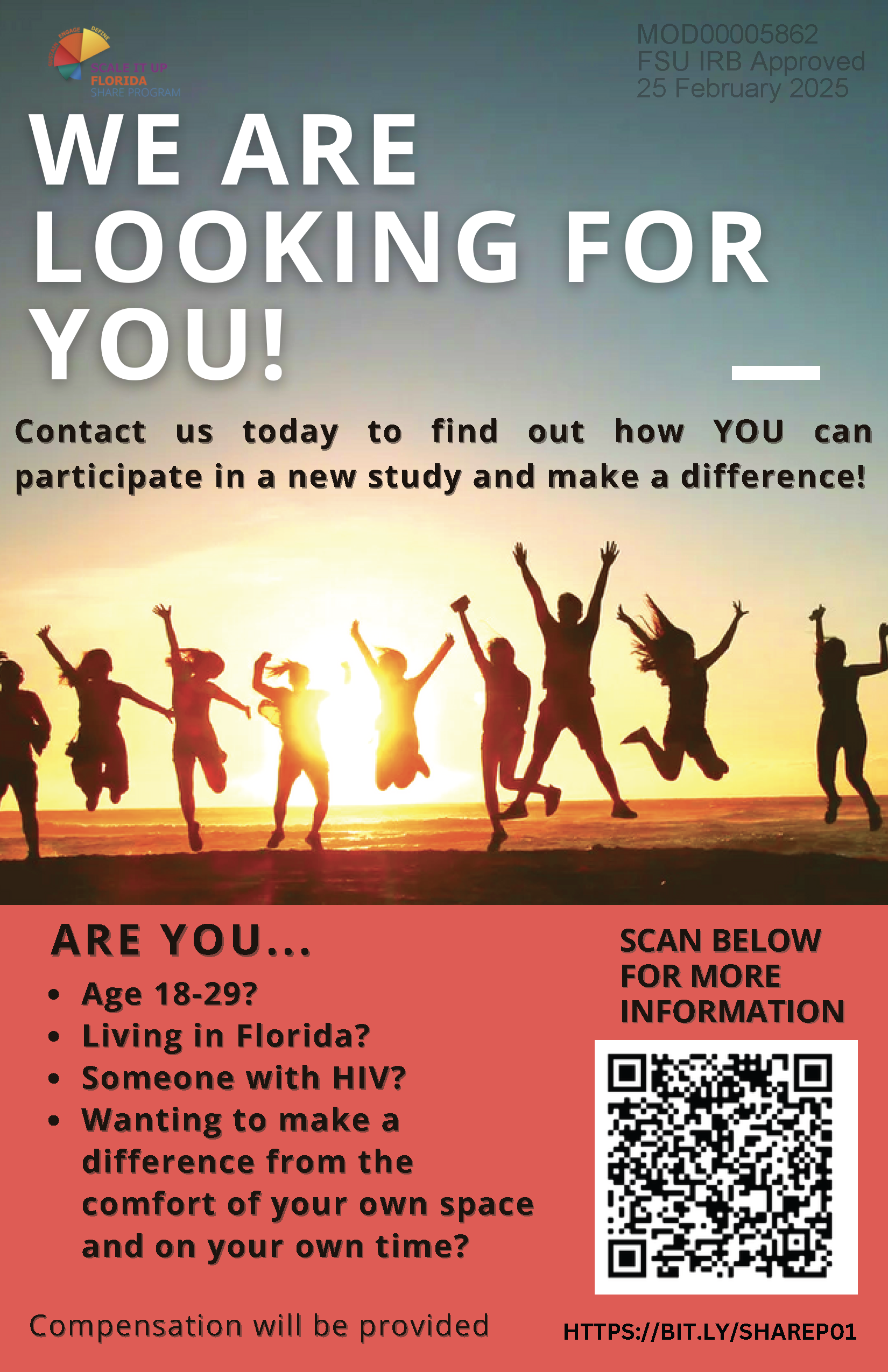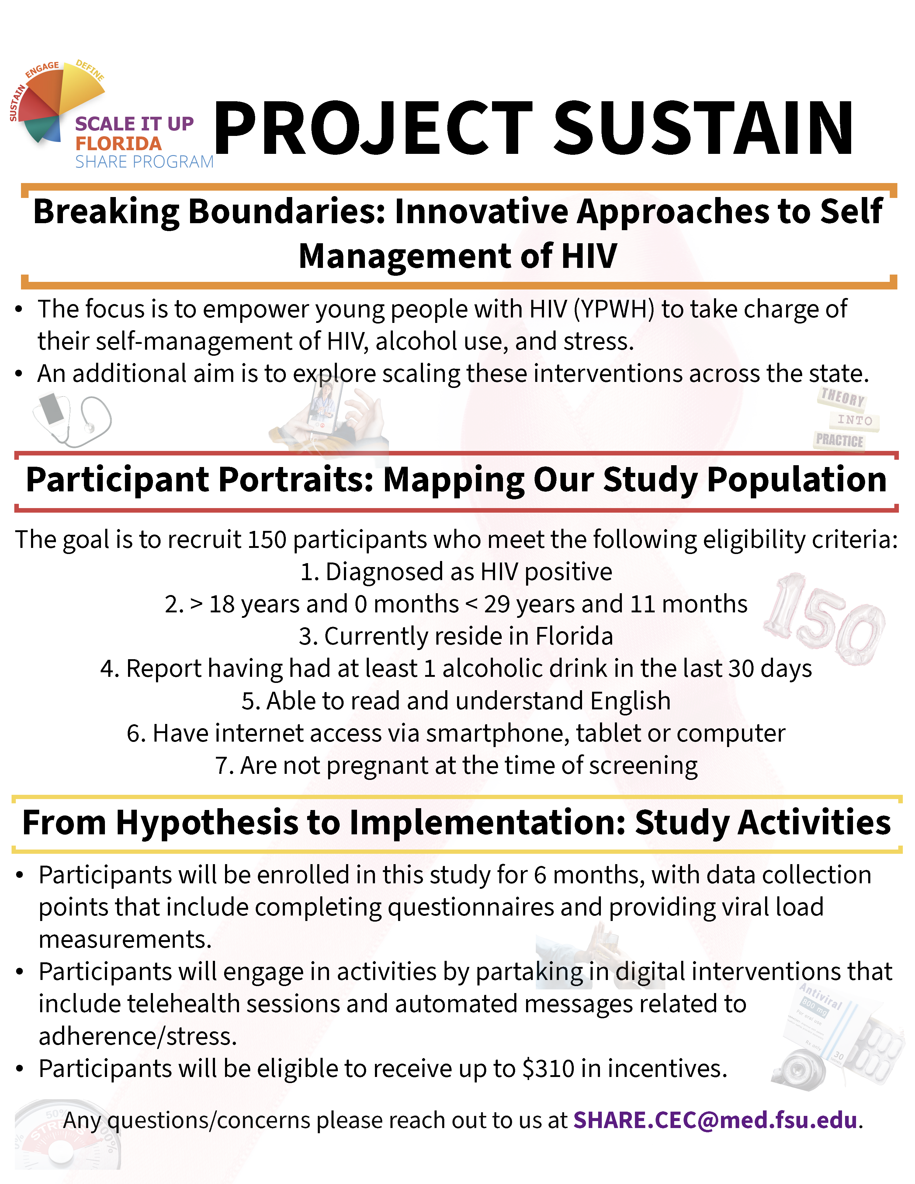 In collaboration with Florida Department of Health and Area 7 HIV/AIDS Program Office, this Ending the Youth HIV Epidemic in Florida demonstration project is funded by the National Institution (NIH) and Adolescent Trials Networks for HIV/AIDS (ATN).